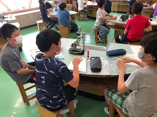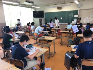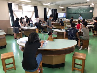1つは社会のテストのようです。もう1つは、理科。今年初めての理科室で気体の実験です。半分の人数なので席に余裕があります。