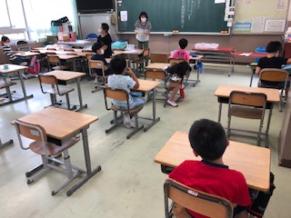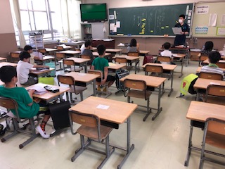 2年の教室です。提出物のチェックをしているクラス、1人ひとりを呼んで「元気ですか」と先生が聞き、「元気です」と子どもが答えています。その子の言葉と声で「元気です」と聞くのは実感があって大切だと感じました♪