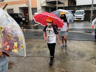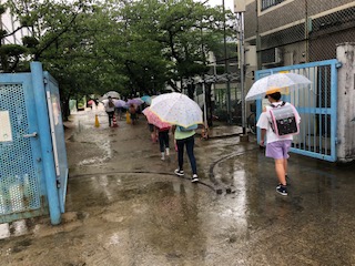 この段階的分散登校も今日が最終日です。午前登校は、寺川、寺川住宅、野崎、雨の中ですが、元気に登校してきました♪