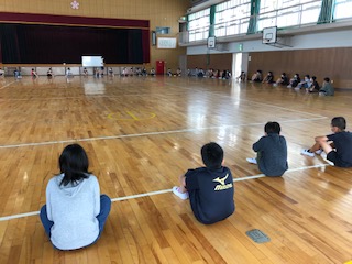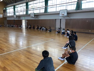 体育館に6年生が集まっています。大きな大きな円を距離をとってつくり、座っています。学年目標を話し合っていました。6年生として、学年づくりが最高学年としてふさわしいものにするにはどんな目標が良いのか。1年〜5年に残していけるものは何なのかをみんなで考え、意見を出します。体育館の窓も扉も全て全開で換気に努めての学年集会です♪