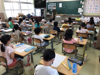2クラスはひらがな「を」や「ん」といった曲線が難しい字を練習します。1クラスは算数、数字を2つに分ける学習です。「5は3と( )」の( )に何の数字が入るのでしょう〜。数字を分けて考える力がつきます♪