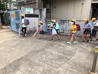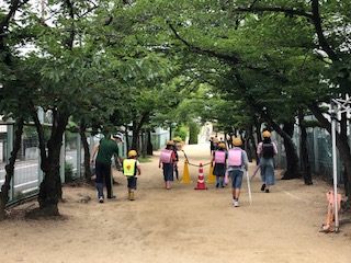 パラパラッと落ちてきた雨が子どもたちのために止まってくれています。
