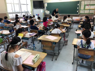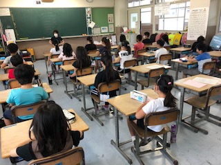 3年生の朝1番の時間です。イスに背筋を伸ばしてきちんと座る、をやっているクラスでは、先生が声をかけるだけで、みるみる子どもたちの姿勢が良くなりました。隣のクラスは国語「言葉で遊ぼう」の学習です。そのお隣では、ちょうど「おはようございます」の挨拶のお話で、クラスの75%の子どもたちは、挨拶をしているそうです。私(校長)にも、みんなで大きな声の「おはようございます」と挨拶をしてくれました。とても清々しく良い気持ちになり、あ〜挨拶はいいものをもらうんだなーと実感しました。しっかり挨拶を交わしましょう♪