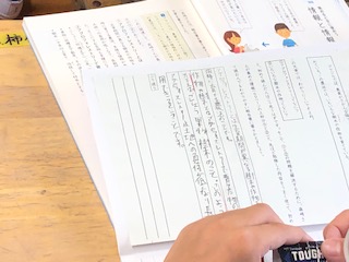 6年生の1つのクラスは、国語「情報と情報をつなげて伝えるとき」という高度な内容に取り組んでいます。授業のワークシートに書く文章の量も増えています。書く力がしっかり育ってきています。