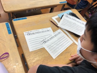 6年生のもう一つのクラスでは、卒業式へのイメージをもってのクラスづくりへの提案です。自分の思いを複数の紙に、理由もつけてしっかり書いています。自分の思いを書く力、表現する力、発信する力につながります!