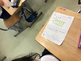 このクラスは生活の時間で、ミニトマトの観察日記に、観察したことと、その理由を考察して書きます。観察すること、気づくこと、そのわけを考えること、書いてまとめること、2年生ながら、論理の組み立てになっています。