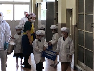 今日は2日目、きちんと並んで行き、手を合わせてご挨拶。2人のペアですべてを持って上がります。