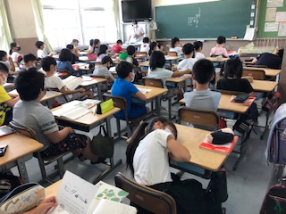 国語の授業に取りかかろうとするクラス、学級目標を決めているクラスです。