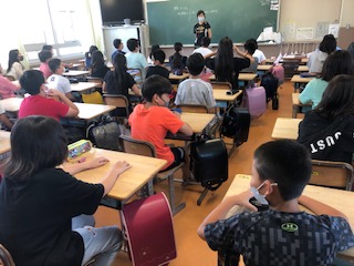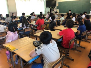 6年の教室あたりで授業始まりのチャイムが鳴り始めました。みんな大急ぎで教室に戻り、チャイムが鳴り終わった時には全員が自分の席についていました。これは、スゴイ!さすが最高学年のけじめは本物です♪