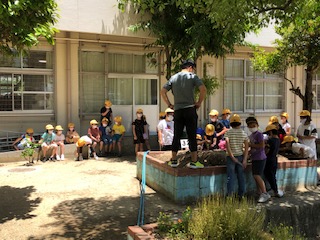 3年の内の2クラスが外に出てきました。1クラスは、お外で観察、と小さなダンゴムシを見せてくれた子がいました。もう1クラスは、先日植えたお花の観察です。半分の子は、後ろで待機、半分の子がまず観察します。三密を避ける工夫です♪