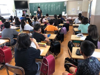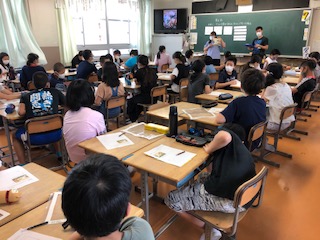 ゴミの写真を見ているクラスがありました。「ゴミ」に他の言葉をつけて見て〜、の先生の言葉で「ゴミの山」、「ゴミ捨て場」、…そして「不当放棄」という難しい言葉も出てきました。多文化共生の話で、日本語が分からず、ゴミを出すことがわからなかった話から多文化共生の学習へとつながります。もう一つの学級は、今から
