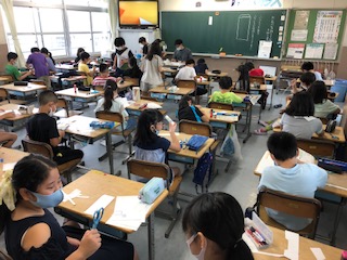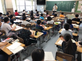 4年の教室です。国語「お礼の気持ちを伝えよう」で、お礼の手紙を書きます。「見守り隊の人に書いた。」と見せてくれた人がいました。お礼の手紙を書く過程で、感謝の気持ちをたくさん味わってほしいものです!