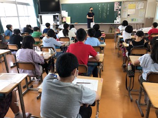 5年生。1つのクラスは、算数をまずそれぞれが自分で解いている様子です。もう1つは国語「和語、漢語、外来語」、「混み合う」の言葉を他に変えると…の問いに「混雑する」と立派な答えが出ました!