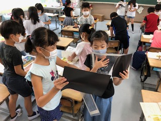 もうひとつの教室では、木の葉〜根を描いているのでしょうか、終わって待っている人もいます。もうチャイムが鳴ったら、20分休みです。
