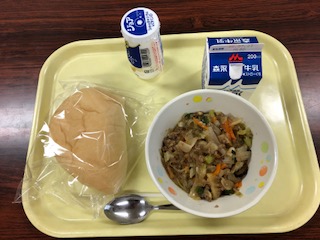 今日の給食です!春雨が美味しい一品です。ジョアがまた嬉しい??