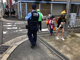 今日も警察の方が見守りに来てくださいました。警察の方にもきちんと「おはようございます」と挨拶して通る子どもたちが礼儀正しく、警察の方も喜んでくださいました。やはり挨拶することは美しいことですね♪