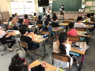 昨日の教室の様子です。2クラスは国語で「仕事のくふうを見つけよう」です。大きくなっての仕事への展望を持つことにつながる学習を期待します。1クラスは先生のお話しです。みんなしっかり聞いているのが後ろ姿でも伝わってきます♪