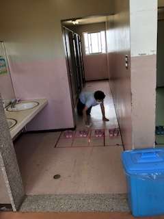 今は、職員が子どもたちのトイレを毎日掃除しており、床をきれいに吹き上げてくれているところに通りかかりました。