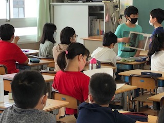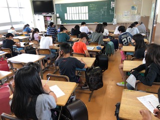 朝の教室、6年生です。会話に学び合いシートを使っているのが、コロナ予防の意識が感じられました。毎日プリントに取り組んでいるクラスもありました。