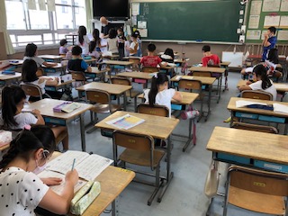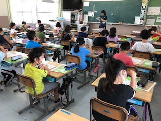 理科のクラスが2つ、風の力の働き、と風とゴムの力と単元が同じでもそれぞれで進み方は違います。国語の漢字のまとめのプリントを仕上げて、見てもらっているようです。集中して頑張っています。