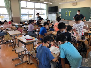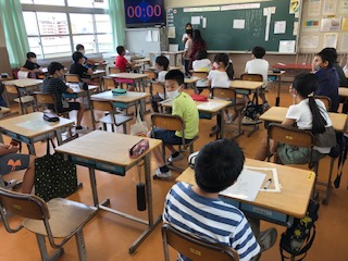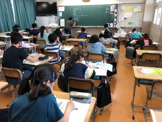 5年生の教室です。理科の授業、算数の学び合い、そして学活では、クラスの委員さんが前に出て、学級目標を話し合っているのでしょうか。5年生はいつも一生懸命に取り組んでいる姿を見せてくれています♪