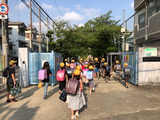 今日も朝からとても暑い中、子どもたちは、しっかりとした足取りで登校してきました。「おはようございます。」と、顔を見て挨拶してくれる素晴らしい子どもたちがいます。是非お家でも聞いて、ほめてあげてください。きちんと顔を見て…、とても折り目正しいです!