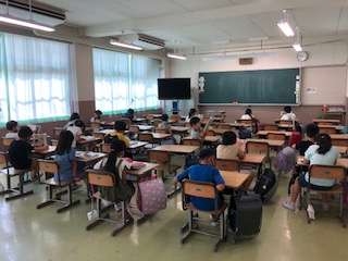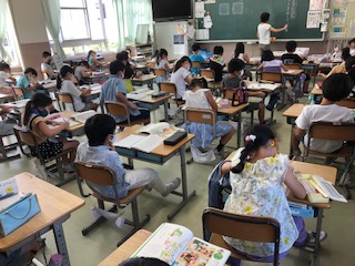 2年生は、国語の学習をしているクラス、図書の時間で図書室から本を借りた人から戻って来て静かに読んでいます。今日は多目的室で1日過ごしているクラスです。外に出ている子に聞くと、「虫の観察」だそうです。「虫がいない…。」確かによくいるダンゴムシも何故か見当たりません。ファイト!
