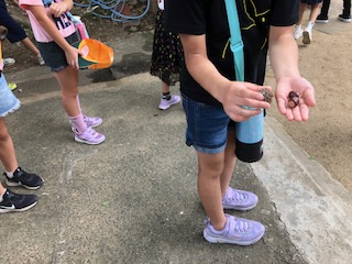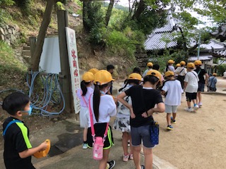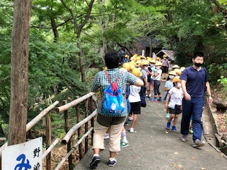 2年生は「街たんけん」に行きました。今日は野崎観音コースです。雲があり暑くない上に、観音の林を抜ける風がとても良い気持ちです♪拾ったどんぐりや木の実を「ほら」と差し出して見せてくれる子たちもいました。急な階段を上ったり下りたり…みんな良く歩きました!