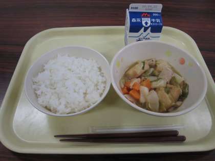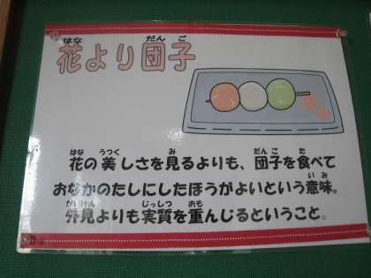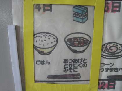 今日の給食はシンプルですが、とてもおいしかったです。厚揚げは一度凍らせたもので、食感がいいです。味噌がからんでいい味です♪食べ物のことわざが食育掲示板にありました。その1つを紹介します。