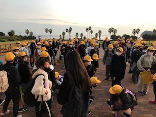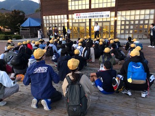 宿舎へ到着、県民の浜です。歓迎の幕も張って待ってくださっていました。入所式でみんなしっかり頭を下げて「よろしくお願いします。」と挨拶しました。