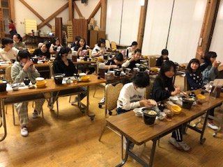 2組の夕食です。「美味しい顔〜」と声をかけると手を挙げて美味しいを表現してくれました♪いただきます、の後マスクを外します。