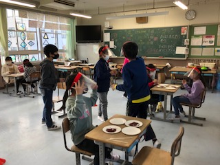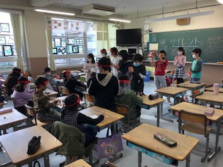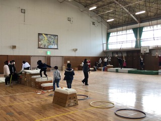 今日は3年と5年の仲良し学年での四小フェスティバルです。体育館は広々と使い、教室は人数をグッと抑えて20人以下での活動です。全部5年生が準備して、3年生をご招待♪何種目もあります。