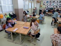 今日も校舎の中はしんしんと冷えます。1年の教室です。1組は道徳でものを大切にすることを、2組は給食調理員さんたちへ書く毎日の美味しい給食への感謝の手紙を、3組は絵の中に同じ形がいくつあるか数えることに取り組んでいます♪