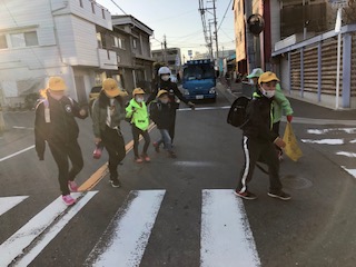 今朝は陽光が眩しく、暖かくなりそうな始まりです♪警察の方も見守りに立ってくださっています。おはようございます♪」の他に「ありがとうございます♪」とハキハキ挨拶した子もいました。