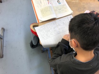 3組は、文集を作るために、この一年の思い出を振り返り、マッピングしてつなげる中で作文に起こしていきます。整理をすることで、まとまった長い文を書くことができています♪