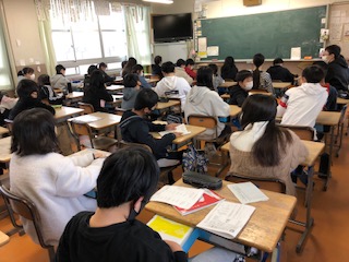 6年生の教室です。朝の業務が終えてゆったりと自席で過ごしています♪