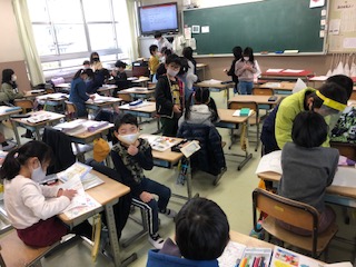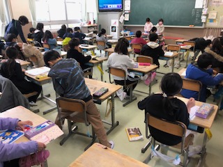 2年生の様子です。1クラスはタブレットの授業が終わり、端末を保管庫に戻していました。1クラスは丁度5分休です。もう1クラスは、授業が始まり、係さんが前に出て授業を進めています♪2年生の子どもたち、とても成長を感じます!