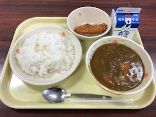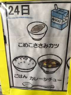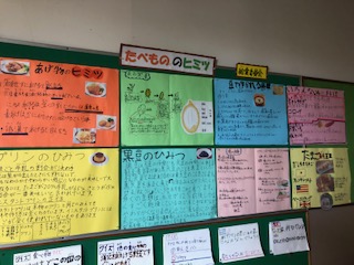 今日は子どもたちに1番人気のカレーです。米粉で揚げたササミカツがパリパリの食感で、とてもとても♪美味しかったです。食育掲示板の給食委員会からの「食べ物のヒミツ」がおもしろいです。