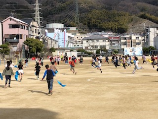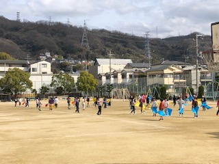 3年生、学年で何かに取り組んでいます。合図でさーっと移動も速やか♪6年生へ何か…でしょうか。