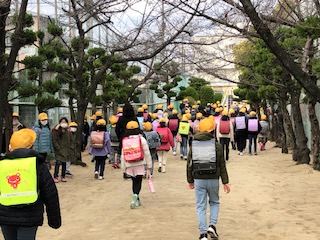 昨日と比べてなんて寒い朝、と思って立っていましたが、子どもはへっちゃらです。「子どもは風の子」なんですね♪みんな元気に表情も良く登校してきました。
