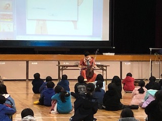 2年生は国語で「スーホの白い馬」という胸にじーんと響く物語を学習しました。舞台はモンゴルで馬頭琴が出てきます。モンゴルの方を講師にお願いして、モンゴルのお話や馬頭琴の演奏を聴きました。体育館に哀愁のある音色が響きます♪とてもきれいな音です。保護者の方々も一緒に聴いていただきました。子どもたちは本のこともこの日の馬頭琴の音色もずーっと覚えていてくれることでしょう♪