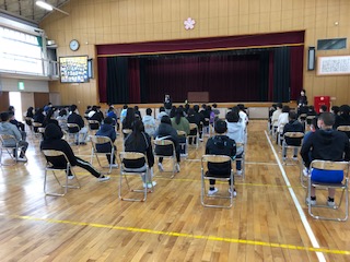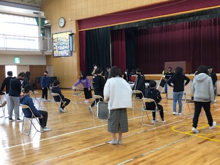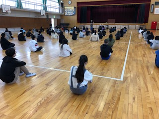 今日から6年生は、体育館で卒業式の練習が始まりました。間隔を取って並ぶことも自分たちで考えてやっています。それぞれ椅子を出して、距離を取って座り、先生のお話です。体育館の床がつややかなのはなぜか、ワックスをかけてくれたのは誰か、みんなの卒業式のために全部の先生たちや子どもたちが準備をし、整えてくれている、その卒業式にどう臨むのか、その場の空気がりんと整っていきます。