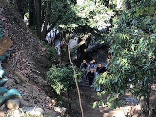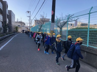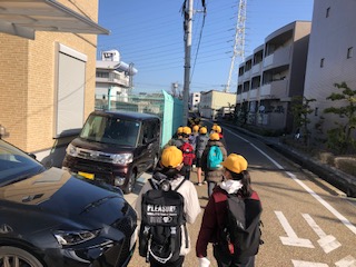 お天気にも恵まれて、今日5年生は校外学習で野外活動センターへ行きます♪野崎観音へ向い、そこからは班でセンターを目ざします。せせらぎの小川で待っていると、先頭の班が坂を下って来ました。ファイト!!
