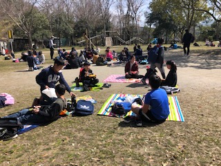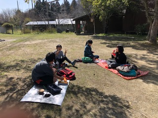 大きな仕事が終わり、嬉しいお昼タイム♪班で丸くなっていただきます、ちゃんと班ですね。お茶やお昼の準備をありがとうございました!