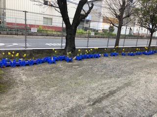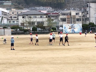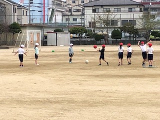運動場では、もう一つのクラスが体育です。どうやら円の内と外でボールを投げ合っているようです…何の種目やら…楽しく体を鍛えていて伸びやかな時間でした♪校舎の北側には、2年生が育てた水仙が春を伝えてくれるように咲いています。保護者の方が来ては、持って帰ってくださっています。お家にも春を呼んでくれますね♪
