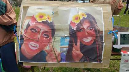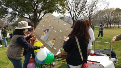 ジグゾーパズル風の男女は両クラスの担任です♪イイ笑顔に仕上がっています。