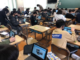 ある日の6年生の教室です。1つのクラスはタブレット授業ですが、使い方ではなく、活用しています。図工の作品の提出で、自分がどこを工夫したのかをまとめて先生に提出するようです。使えているところがすごいです♪隣のクラスは社会、先生がしっとりと語っています。担任の先生がそれぞれ相方のクラスでの授業で、教科担任制で1年間やりました。学年全部の子どもたちに思いを持っているのが伝わる語りでした。