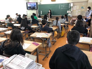 6年生は、出前授業に四条中学校が栄養教諭の先生が来てくださって、中学校の給食のお話しを聞きました。質問では、「ラーメンはありますか?」「ジャムはどんなのがありますか?」ユニークな質問が出ていました♪