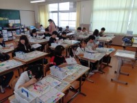 3年生の1クラスでは、国語で「まいごのかぎ」という読み物です。全員が場面ごとにタイトルをつけれるように、理由を言えるように頑張ります♪必要な時にさっとフェイスシールドをつけるのが手早い子どもたち、ペア読みもプリントを持ったり工夫しています。上手な聴き方を学んでから、人の発表をしっかり聴き取りました。人の意見を聞きたい、と乗り出す姿勢に意欲があふれています♪