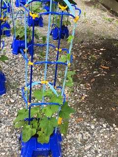 1年生は、教室で準備をしたら、朝顔の水遣りに出てきます。自分の植木鉢の観察、人のと比べて発育は…じっくり観察して見ます♪